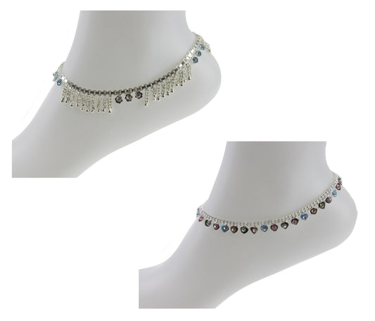 Silver Anklet Ankle Chain Multicolor Diamante Indian Bell Payal Foot Jewellery